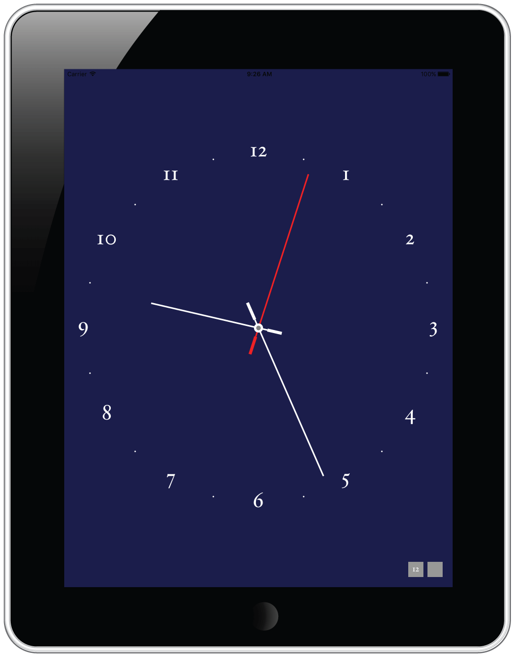 Solution: Put two small buttons in the corner, so they will not overlap the clock face in any orientation or on any device. One button cycles through several choices of tic marks or number fonts. The other button cycles through different colors.